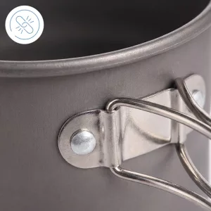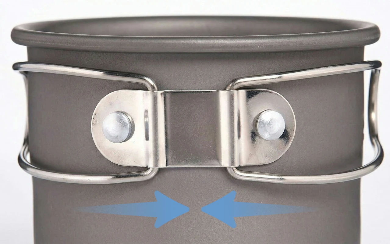 Guardo esta pequeña taza en la caja de camping de mi coche. Calienta bien el agua en el hornillo y las asas plegables nunca estorban al empacar.