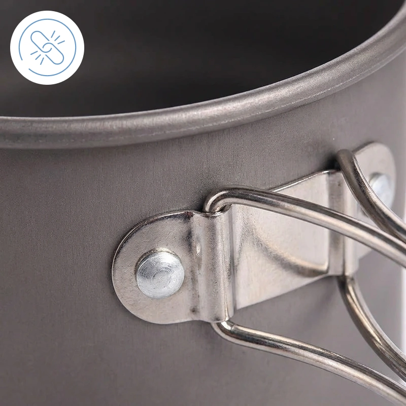 Soy torpe y se me cae el equipo a menudo. Esta pequeña taza ha recibido unos cuantos golpes contra rocas y sigue perfecta, sin abolladuras ni asas flojas.
