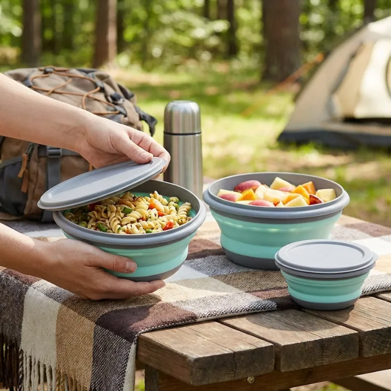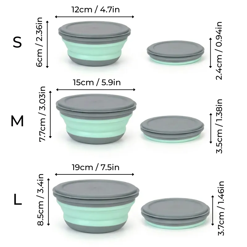 Estos cuencos apilables se pliegan hasta quedar planos en segundos, ayudándote a ahorrar espacio. Lleva más cosas esenciales deslizándolos en cualquier bolsillo o bolso.