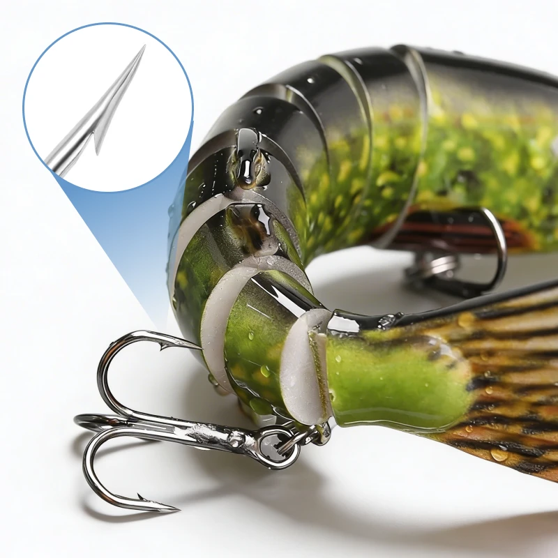 Ocho secciones flexibles ayudan a que este señuelo nade como una presa real. Cada movimiento tienta a los depredadores y aumenta tus resultados.
