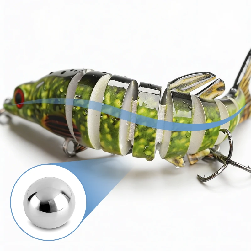 La bola oculta en el interior produce sonido para atraer la atención. Ocurren más mordidas porque los peces curiosos no pueden ignorar el señuelo.
