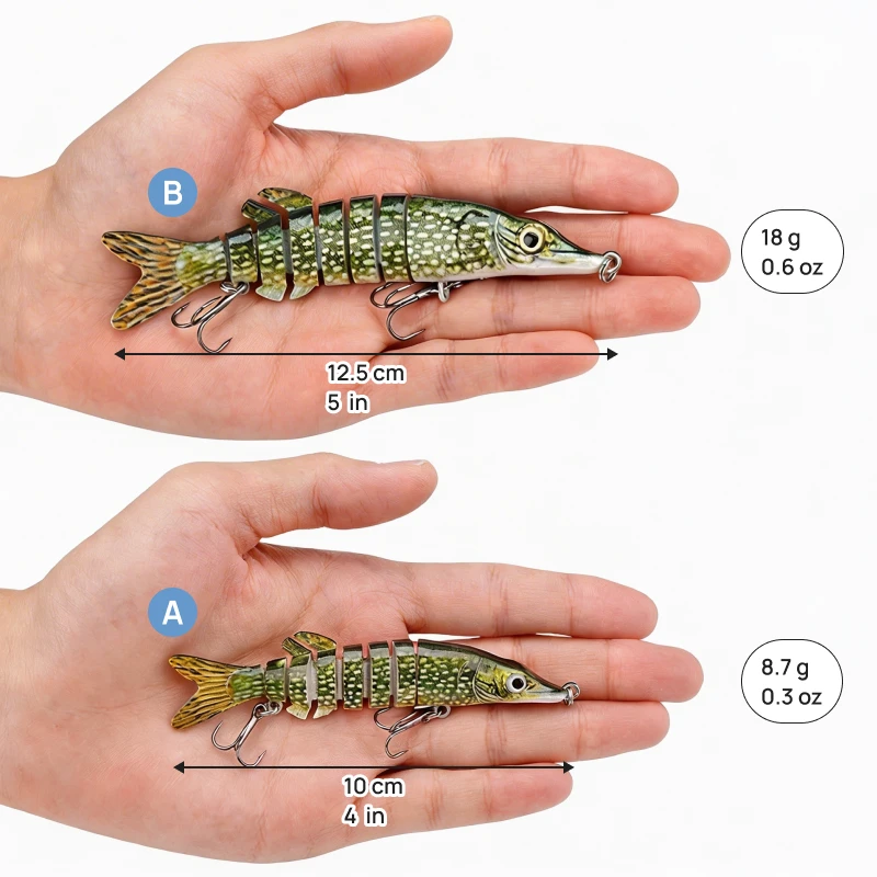 Sigo pescando más percas y lucios con estos. Las uniones hacen que se muevan de manera muy natural. Es genial tenerlos en mi bolsa de pesca.