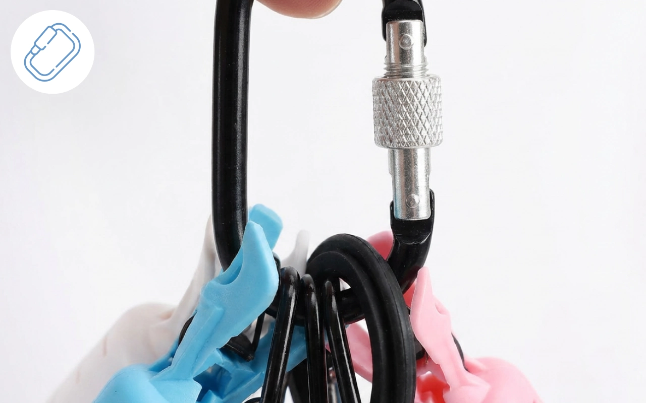Guarda el equipo de pesca de forma ordenada y mantenlo organizado en cada viaje. El mosquetón mantiene todo junto, ahorrando espacio en tu equipo.