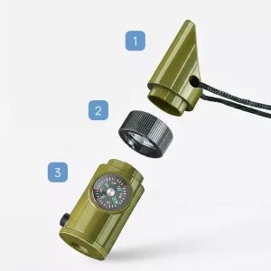 Añadimos este silbato a nuestra caja de camping familiar. Los niños aprendieron a usar la brújula fácilmente y practicamos con el espejo y el sonido en simulacros de rescate.