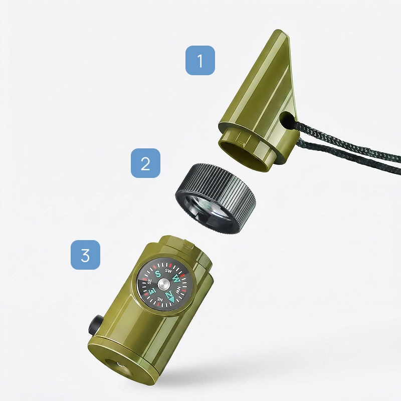 Una señal fuerte, linterna brillante y espejo útil llaman la atención rápidamente. Guarda pequeños objetos esenciales de forma segura, listos siempre que los necesites.