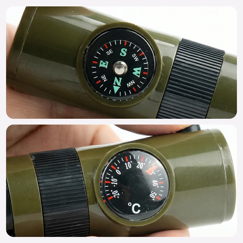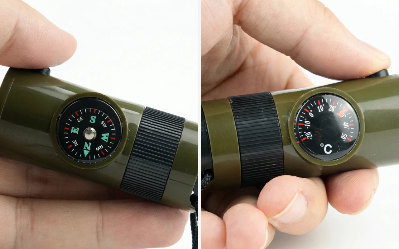 Compré el silbato para los viajes de pesca de mi hijo adolescente. Usa el medidor de temperatura para revisar el frío de la mañana y el fuerte sonido para llamar a sus amigos al otro lado del lago.