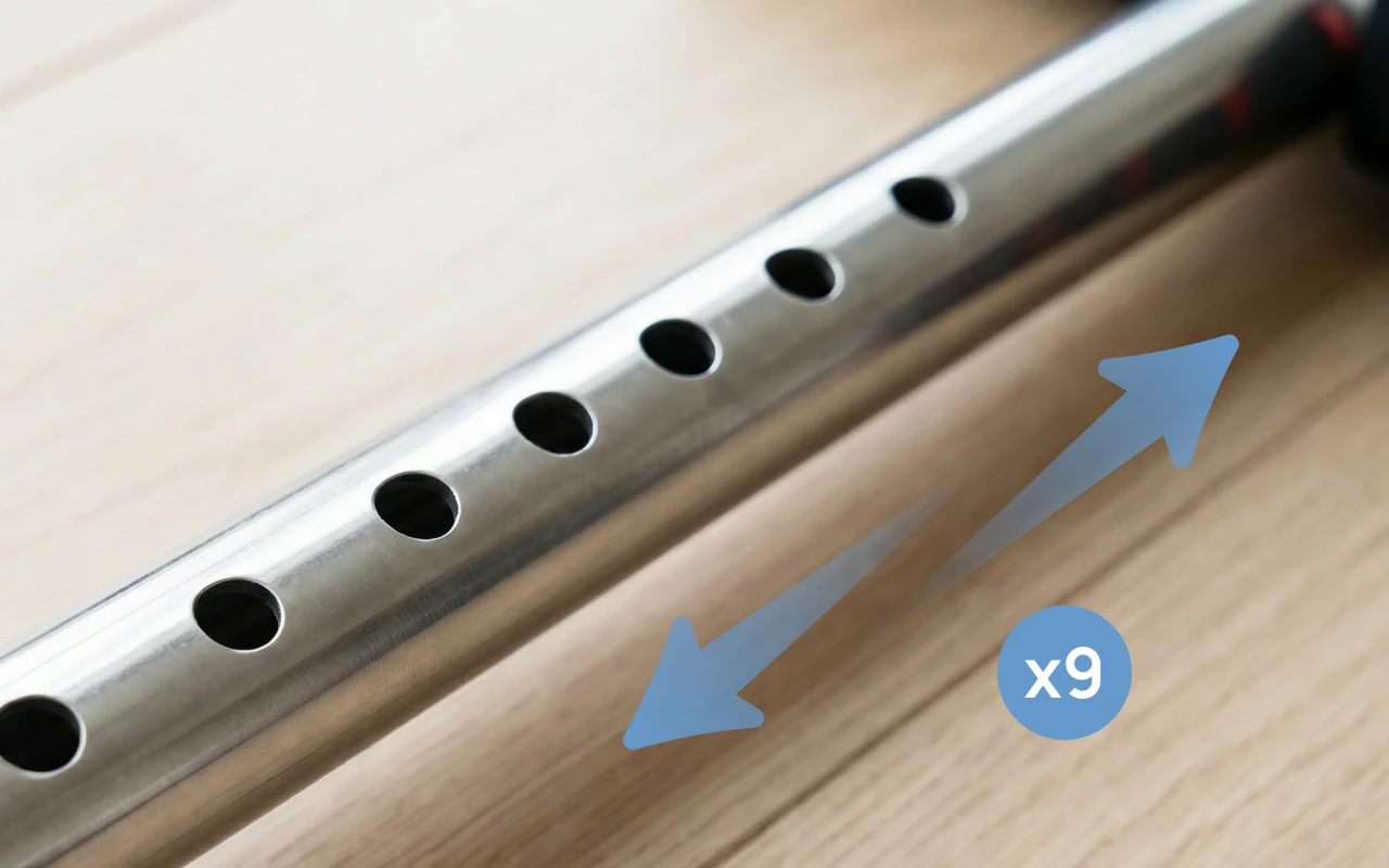 Ajusta nueve niveles para adaptarse a tu altura y necesidades. Todos pueden estirarse de forma segura sin importar la edad o habilidad.