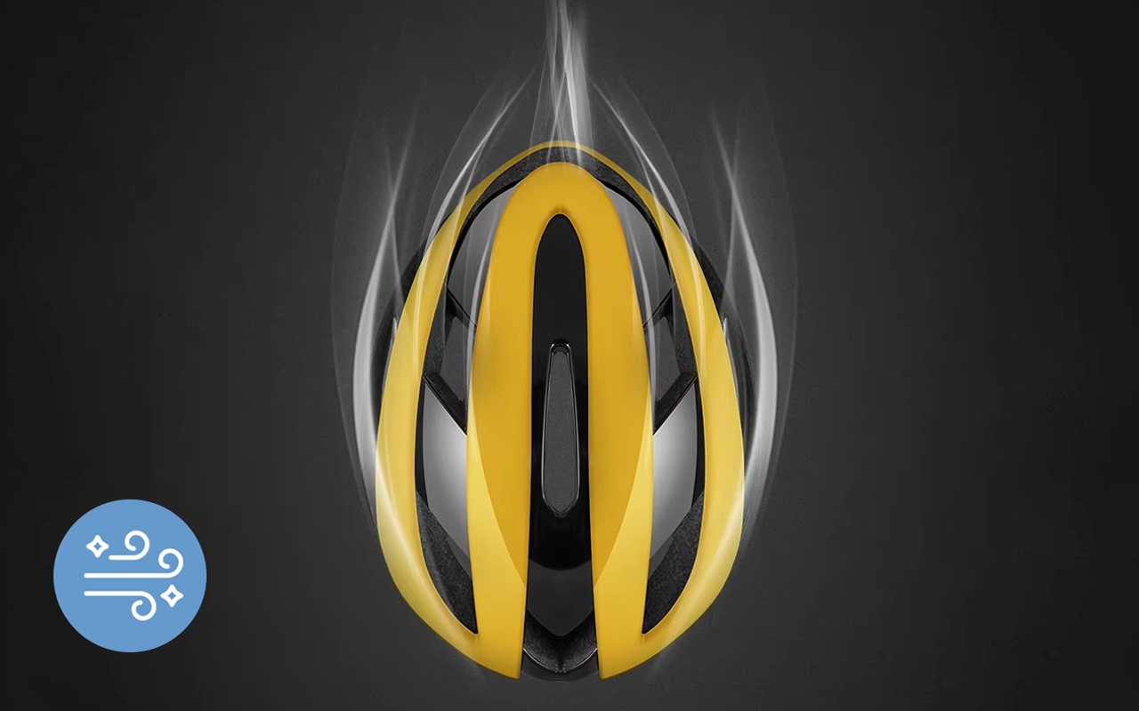 Dieciocho orificios de ventilación permiten que el aire circule libremente mientras te mueves. Mantente fresco y seco, incluso en trayectos calurosos o largos.