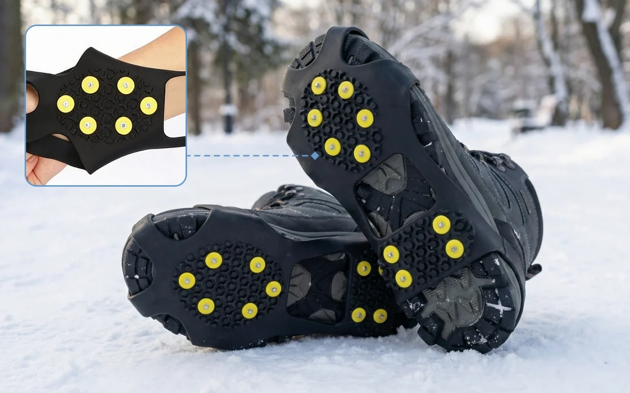Me encanta cómo los pinchos se clavan cuando estoy paleando nieve. Son fáciles de quitar en la puerta para que mis zapatos se mantengan secos dentro.