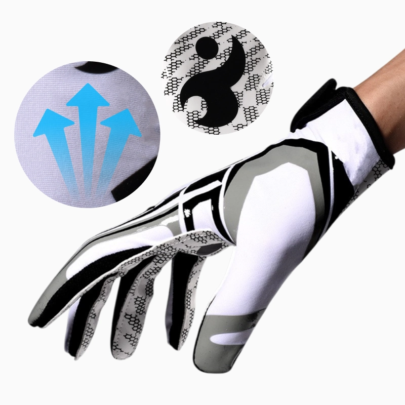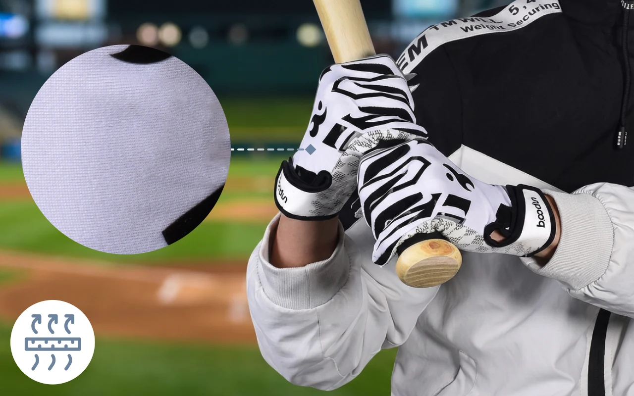 La superficie especial evita que los bates o pelotas se resbalen. Sujeta el equipo con confianza incluso en condiciones de sudor o humedad.