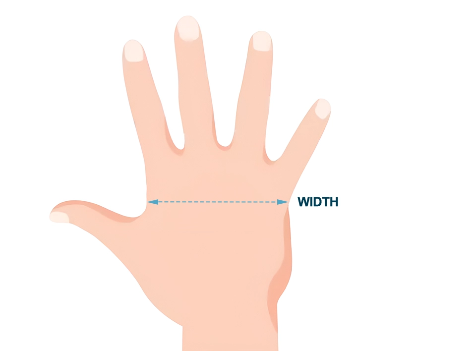 - 1. Extiende la cinta métrica a lo ancho de la parte más amplia de la palma.