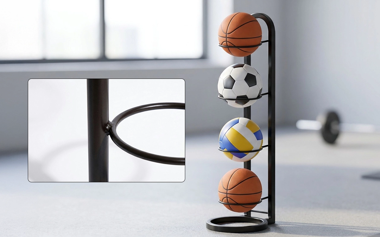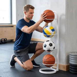 El desorden del material deportivo desaparece rápidamente con este práctico soporte. Su estructura de acero al carbono resistente soporta el uso diario. Su estilo sencillo encaja perfectamente en dormitorios, salones o gimnasios. No necesita tornillos, así que cualquiera puede montarlo rápidamente. Disfruta de más espacio mientras mantienes cada balón al alcance de la mano.