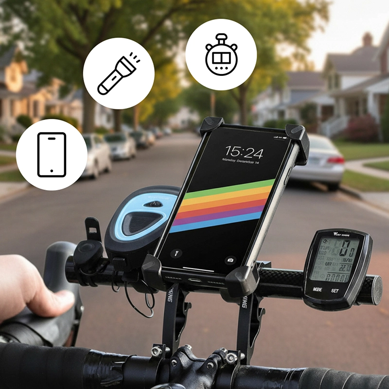 Nuestro extensor proporciona un lugar para accesorios, incluyendo luces, dispositivos GPS y soportes para teléfono. Ayuda a mantener tu manillar organizado y libre de desorden.