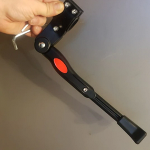 Nuestra pata de apoyo para bicicleta está hecha de una resistente aleación de aluminio y tornillos de acero inoxidable. Los materiales de alta calidad hacen que nuestra pata no solo sea fuerte y duradera, sino también antióxido. La abrazadera tiene un inserto de plástico que protege el acabado y asegura que la bicicleta se mantenga estable. Además, hay gomas en la base de cada pata para hacerla resistente al desgaste. Estas aumentan la fricción y tienen una función antideslizante para garantizar la estabilidad de la bicicleta y evitar deslizamientos en superficies mojadas y embarradas.