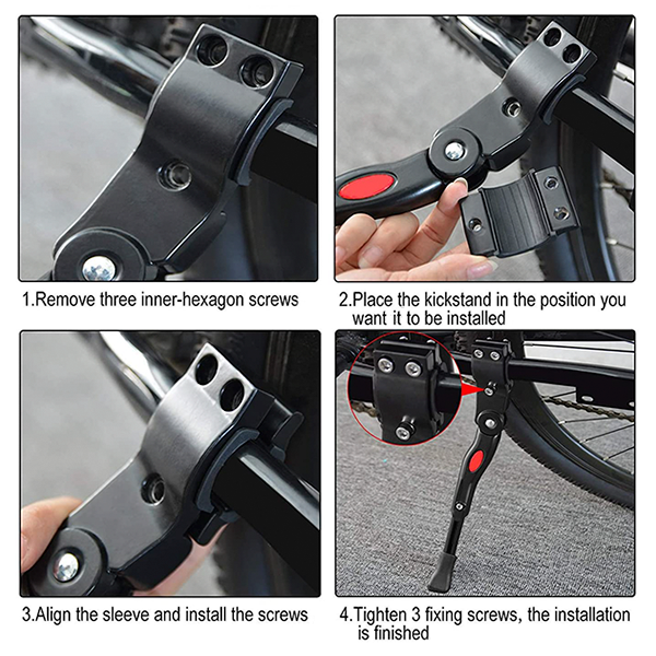 Las patas de apoyo THREO pueden usarse con la mayoría de tipos de bicicletas, incluyendo bicicletas de montaña, de carretera, infantiles y plegables. Además, nuestra pata de apoyo se puede instalar en tubos elípticos con un diámetro de 15-30 mm. Lo más importante es que nuestras patas son ajustables en altura para adaptarse a tu preferencia. El soporte para bicicleta con una llave puede aflojarse en el centro del tornillo para que la longitud pueda ser ajustada entre 34-40 cm. Además, la instalación de nuestra pata de apoyo se completa rápidamente en tres sencillos pasos. Solo necesitas aflojar los tornillos, asegurar la pata a la bicicleta y luego apretar los tornillos.