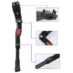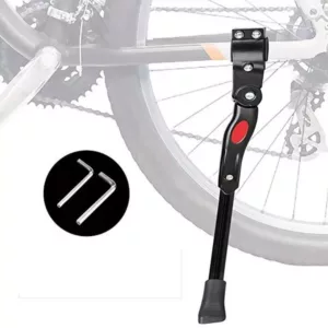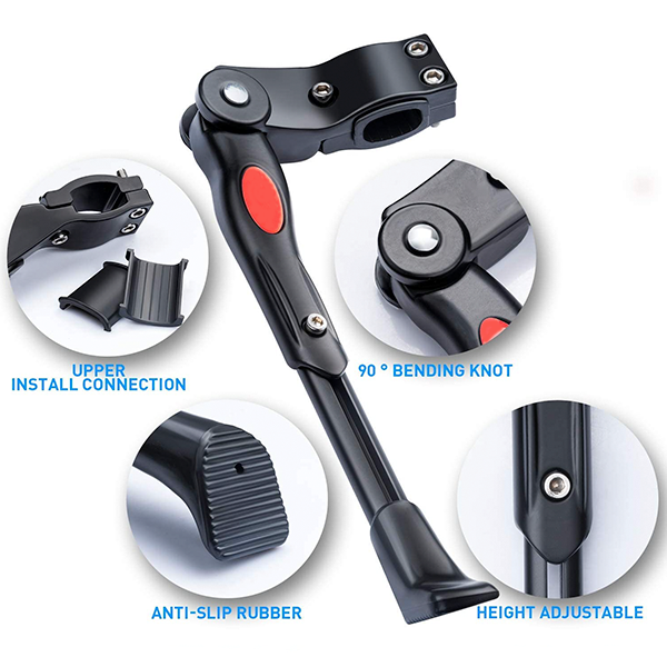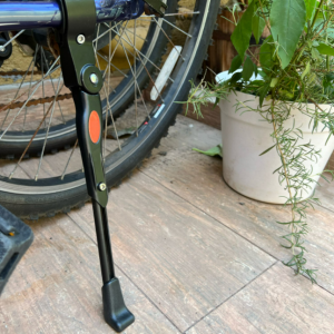 Nuestra pata de apoyo para bicicleta está hecha de una resistente aleación de aluminio y tornillos de acero inoxidable. Los materiales de alta calidad hacen que nuestra pata no solo sea fuerte y duradera, sino también antióxido. La abrazadera tiene un inserto de plástico que protege el acabado y asegura que la bicicleta se mantenga estable. Además, hay gomas en la base de cada pata para hacerla resistente al desgaste. Estas aumentan la fricción y tienen una función antideslizante para garantizar la estabilidad de la bicicleta y evitar deslizamientos en superficies mojadas y embarradas.