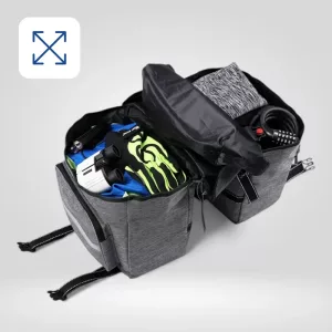Me encanta lo fácil que es organizar mi equipo. La bolsa se mantiene fija, incluso en caminos con baches. Hace que llevar el almuerzo y las herramientas sea muy sencillo.