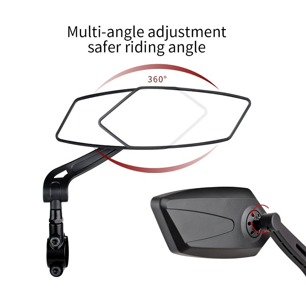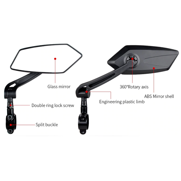 Nuestros espejos retrovisores para bicicletas utilizan lentes de vidrio de alta definición, una base de aleación de aluminio de alta resistencia y un marco duradero. Todos los materiales son lo suficientemente resistentes y difíciles de romper, sin importar la velocidad a la que prefieras pedalear. Además, el soporte del espejo retrovisor para manillar es totalmente rotativo y ofrece una visión completa detrás de ti. Puede ajustarse en cualquier momento para ver lo que viene desde diferentes direcciones. Asimismo, los brazos largos de los espejos para ciclismo proporcionan una cobertura óptima para mejorar tu visión periférica. Además, el diseño del poste flexible no rebota incluso al rodar por caminos irregulares.