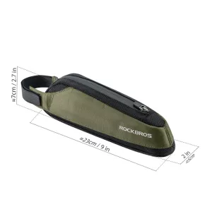 La bolsa del tubo de la bicicleta Threo se asegura firmemente con fuertes correas de velcro. Se coloca en segundos y permanece en su sitio en caminos irregulares.