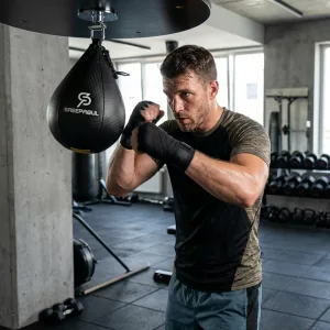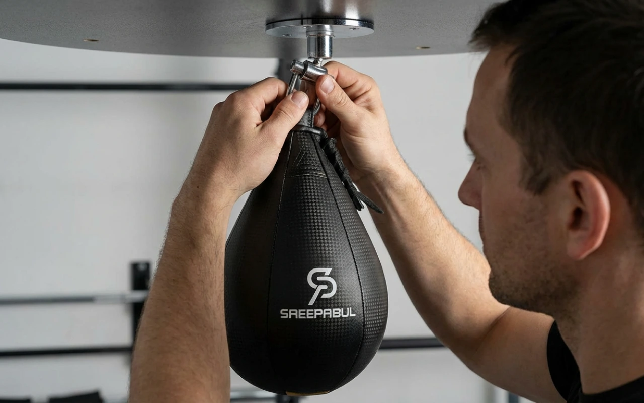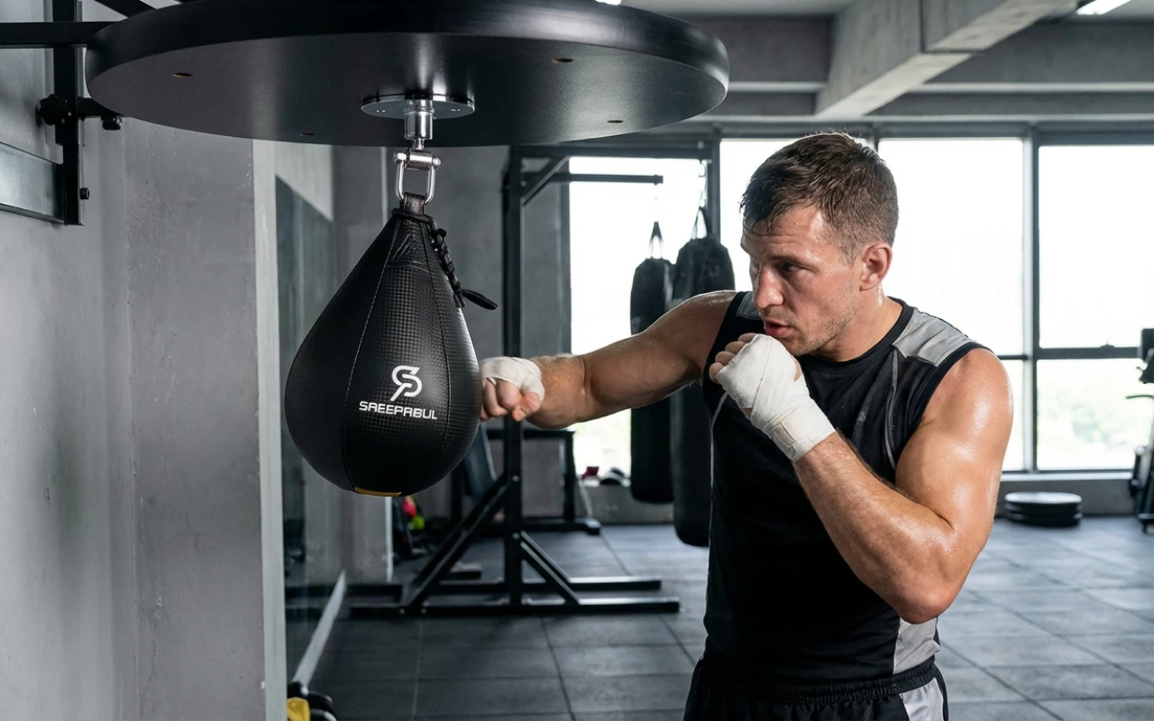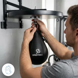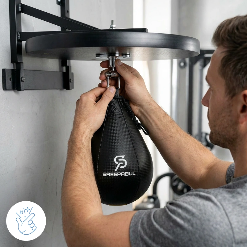 Instalamos esta pera de velocidad en el garaje con mi esposo. Nos turnamos entre rounds, riendo, sudando y, sin darnos cuenta, afinando mucho nuestras manos.