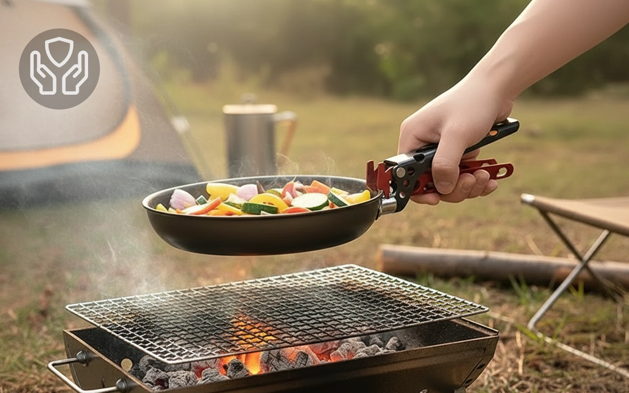 Nunca te preocupes por quemaduras al manipular utensilios calientes fuera de casa. El asidor Threo protege tus manos y te permite mover las ollas fácilmente.