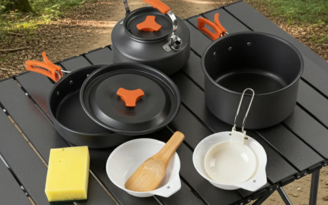 camping cooking pot set, camping tableware set, outdoor tableware set, camping pot set, camping cookware