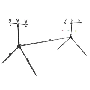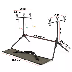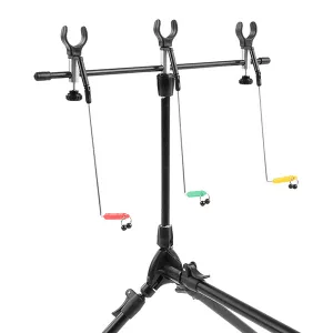 Mejora tu experiencia de pesca con el Soporte para Cañas Threo Carp — tu compañero de aventura definitivo. Nuestro soporte es altamente portátil, compatible con alarmas de mordida y soporta hasta tres cañas con seis reposacañas y tres colgadores. Fabricado en aluminio resistente, garantiza la máxima estabilidad gracias a su contacto con el suelo en cuatro puntos.