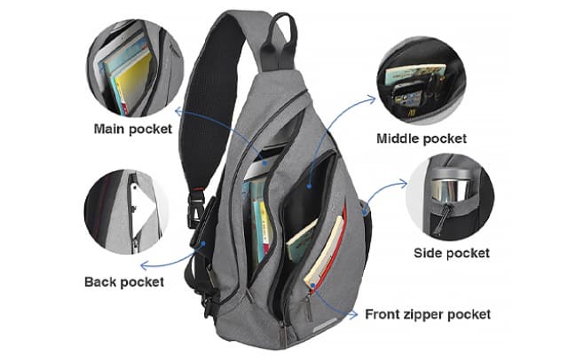 Nuestra mochila bandolera tiene muchos compartimentos y bolsillos para satisfacer todas tus necesidades. Te ayuda a mantenerte organizado y tener fácil acceso a los artículos que necesitas. Un bolsillo oculto en la parte trasera ofrece seguridad extra para los objetos más valiosos.