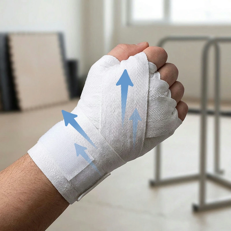 Estas vendas de algodón hacen que mis rondas de sombra y saco se sientan más seguras. La elasticidad es justa, no aprietan demasiado y no se amontonan debajo de los guantes.
