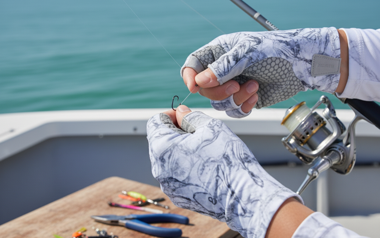 Ahora puedo hacer nudos de pesca súper rápido ya que tengo los dedos libres. Me encanta lo ligeros que son—¡incluso uso el móvil con ellos puestos! Los mejores guantes hasta ahora.