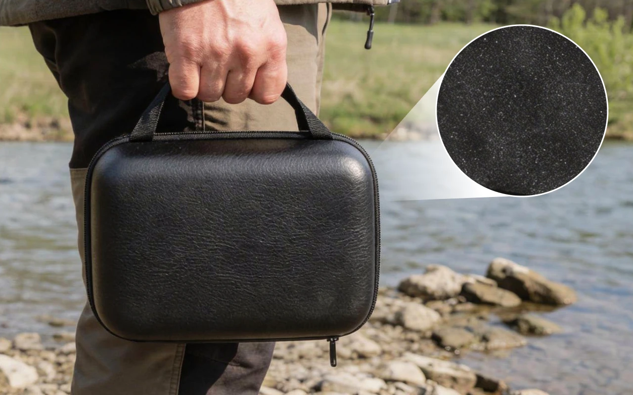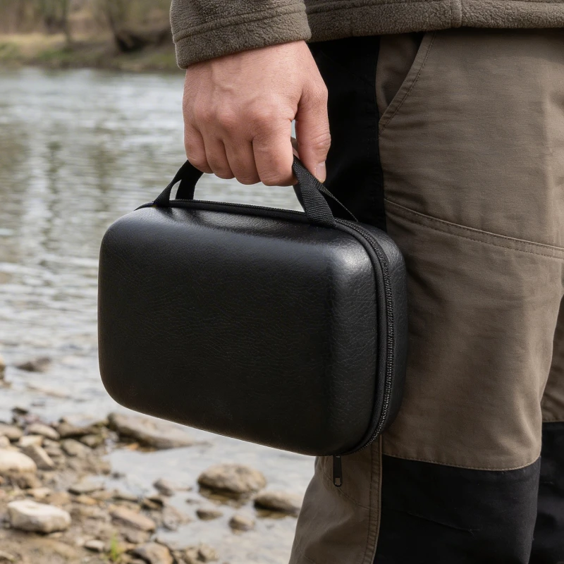 Me gusta cómo puedo limpiar fácilmente el exterior después de un día con lodo. Mantiene mis carretes seguros y listos para la próxima.