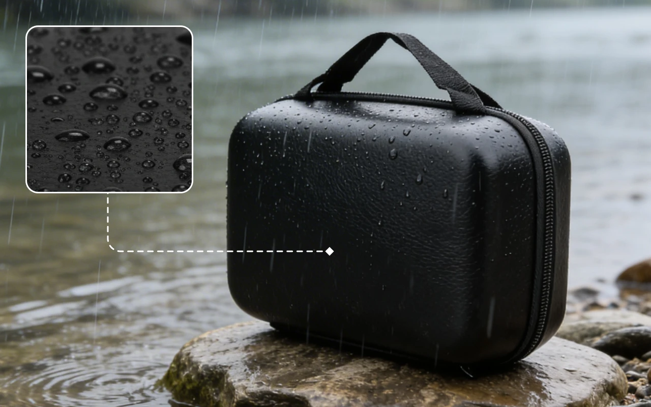 El exterior duradero bloquea la entrada de agua y suciedad. El equipo siempre se mantiene seco y listo para la acción.