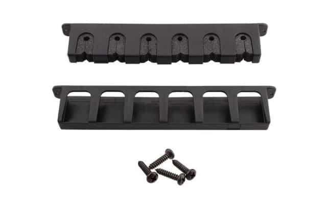 Nuestro soporte para bastones se puede instalar en solo unos minutos con los cuatro tornillos y anclajes para paneles de yeso.
