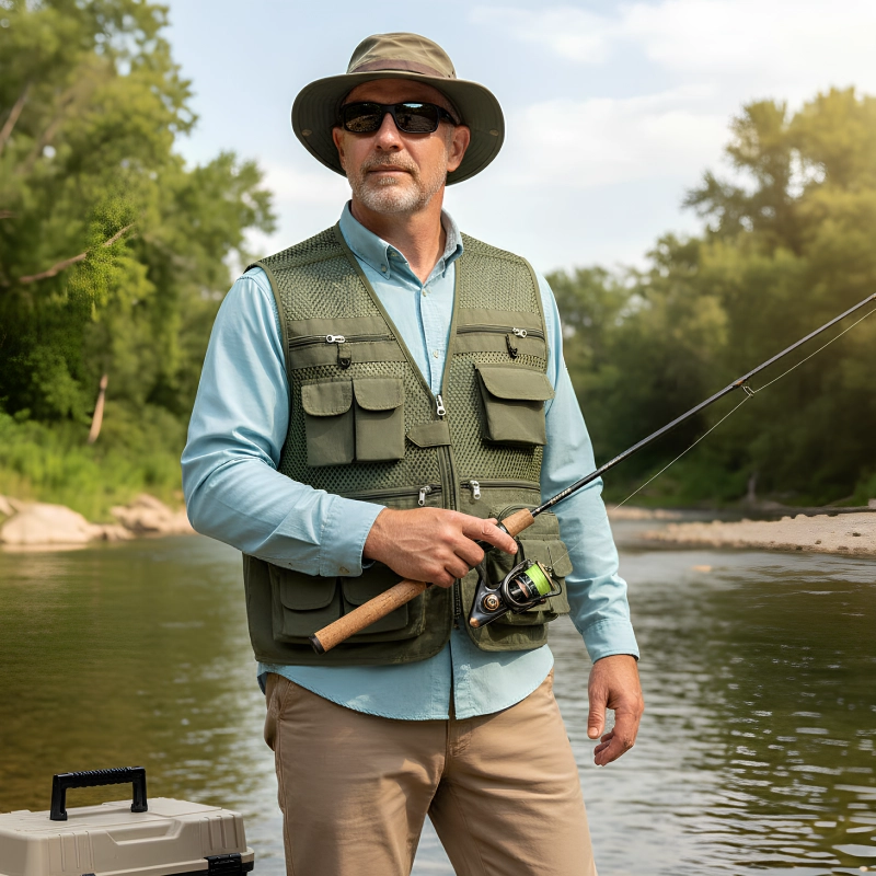 Chaleco increíble para todos mis viajes de pesca. Bolsillos justo donde los necesito, nada se mezcla. Se siente súper liviano y nunca da calor.