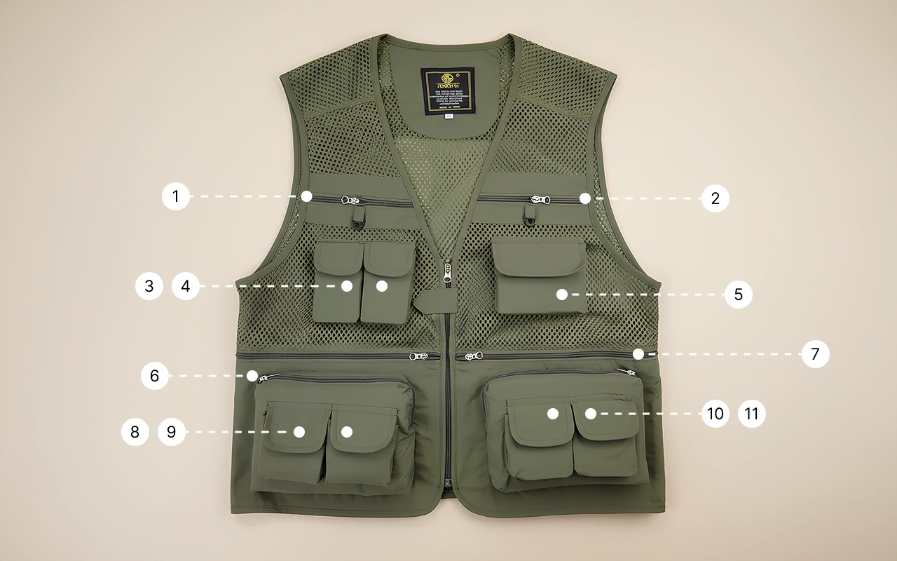 Me encanta cuánto puedo organizar en este chaleco. Todo es fácil de alcanzar, incluso cuando tengo prisa. No sudé nada, ni siquiera bajo el sol.
