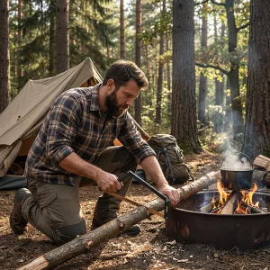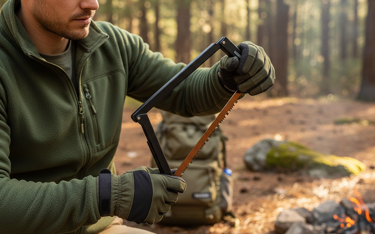 La sierra nunca se dobló al cortar troncos gruesos para una fogata. Es más fuerte de lo que parece y no se atascó.