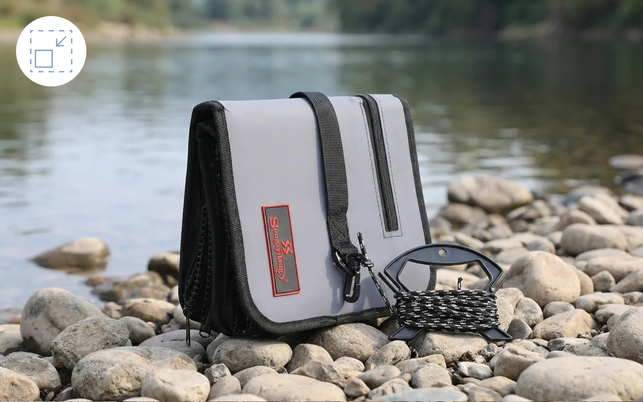 Esta cesta plegable es ideal para la pesca en río. La dejé caer con la cuerda y mis manos se mantuvieron secas toda la tarde.