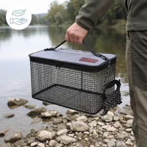 Llevé esta jaula para peces al lago el fin de semana pasado y me encantó lo fácil que fue llevar todo. La malla era resistente y mantuvo mi pesca segura todo el día.