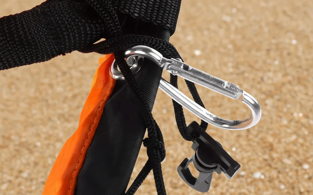Abre y coloca la vela para kayak Threo en segundos, usando robustos mosquetones. No hay herramientas ni instrucciones complicadas que te detengan en la orilla.