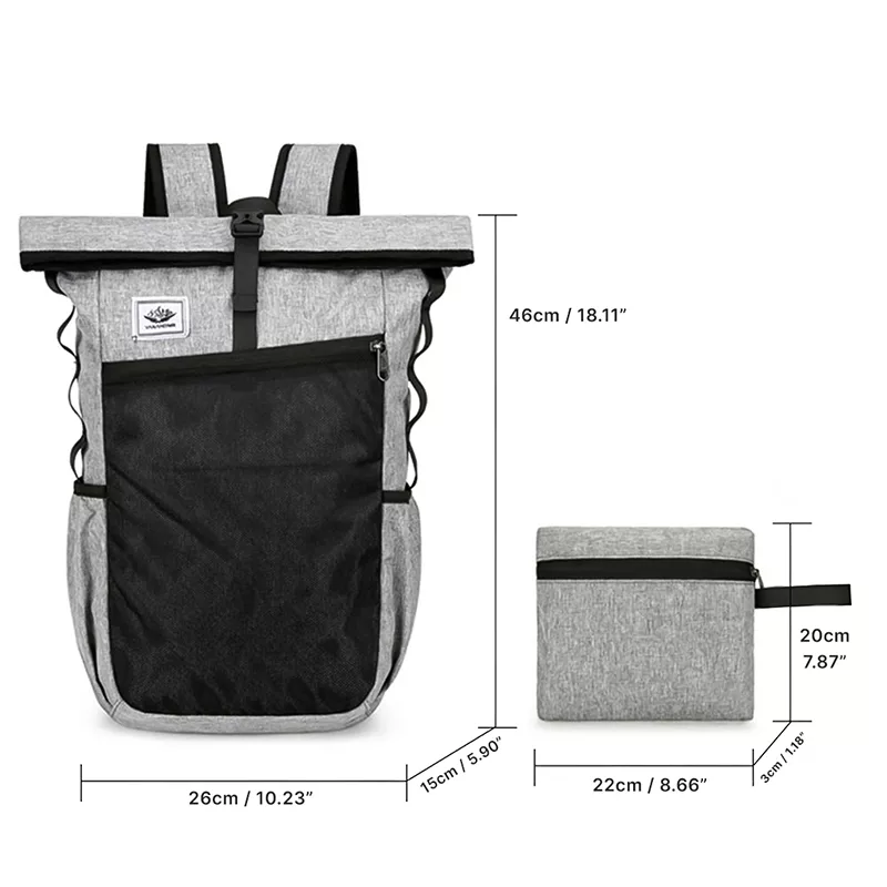 Nuestra mochila se puede plegar fácilmente hasta un tamaño pequeño, ahorrando espacio de almacenamiento.