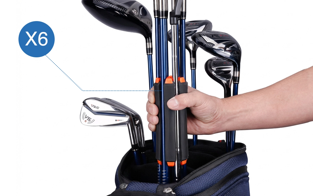 Encuentra el palo correcto al instante sin buscar entre las bolsas. Pasa más tiempo jugando y menos tiempo organizando tu equipo.