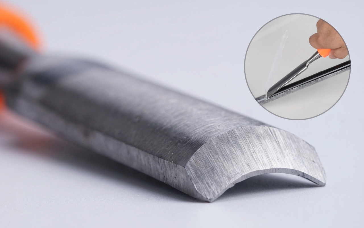 Lo compré después de ver a un amigo usar el suyo. El filo se desliza bajo la cinta, la suelta rápido y deja la varilla como recién pulida.