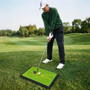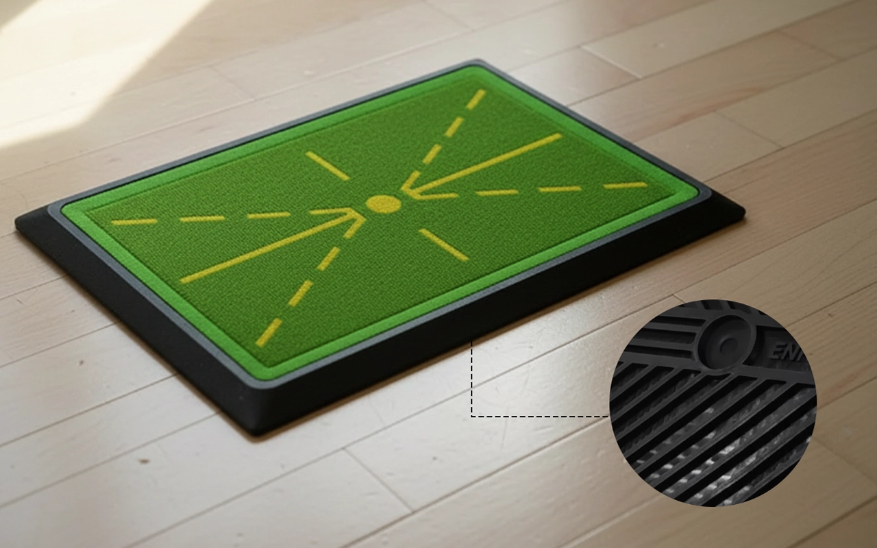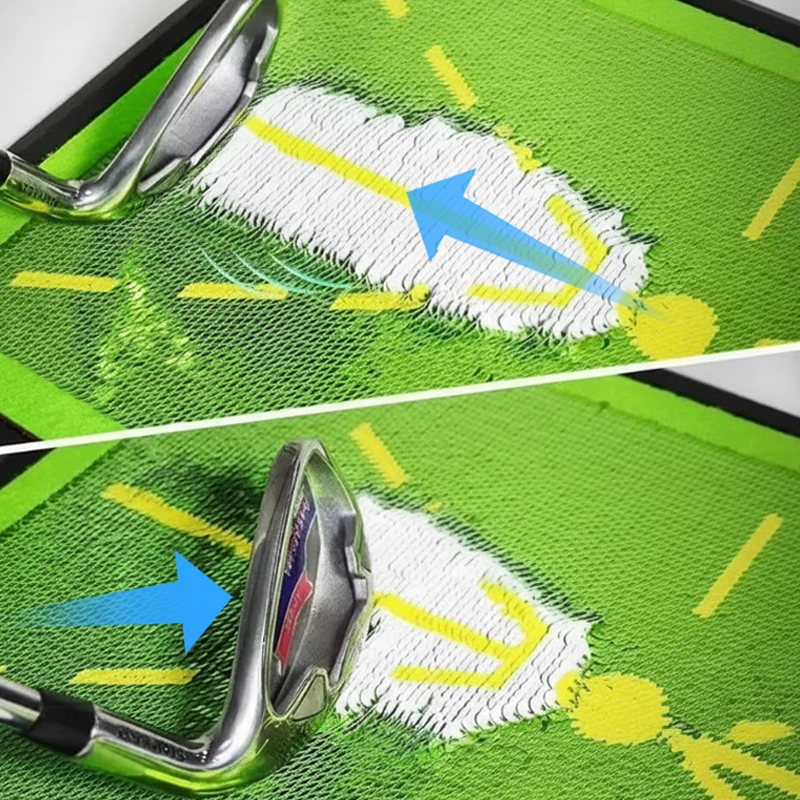 Nuestra alfombra de entrenamiento muestra claramente las marcas de impacto, lo que te ayuda a identificar y corregir errores comunes en el swing.