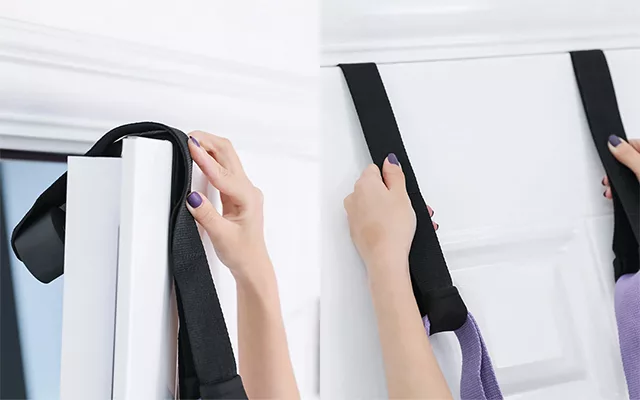 Esta cuerda de yoga se puede instalar fácilmente en la mayoría de los marcos estándar sin herramientas. Convierte cualquier habitación en un espacio de entrenamiento.
