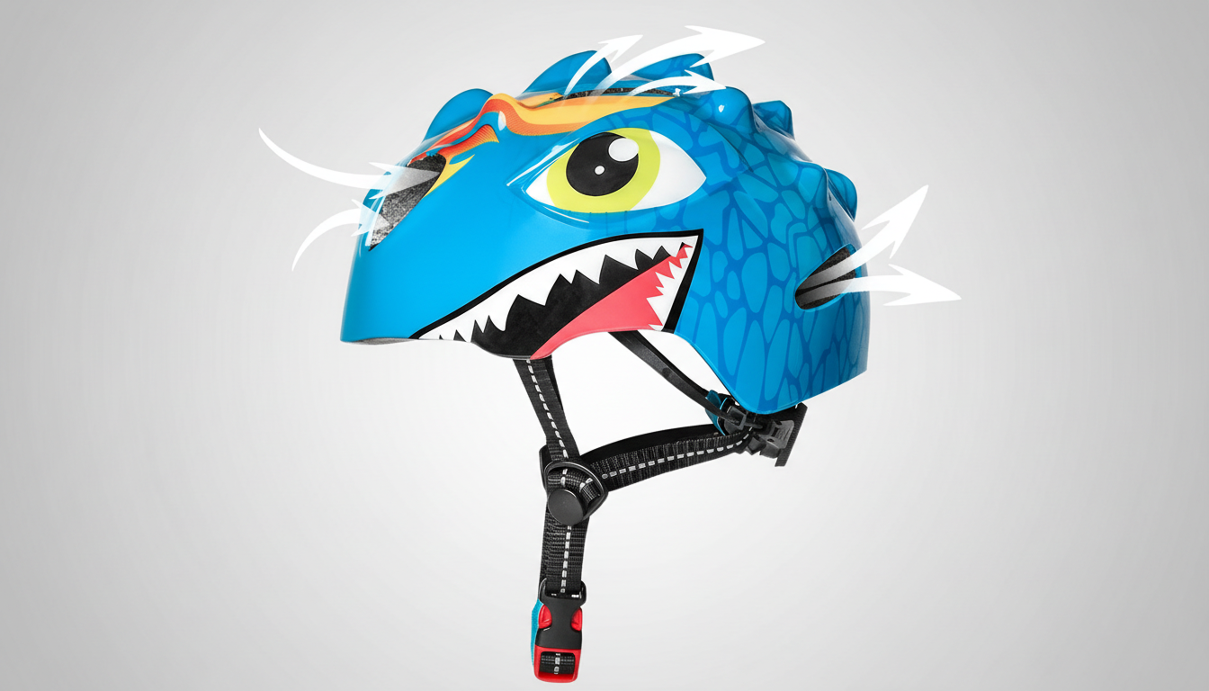 El casco de dinosaurio se mantiene bien puesto en la cabeza de mi hijo y ya ha soportado algunas caídas sin ni un rasguño. Muy recomendable para niños pequeños.