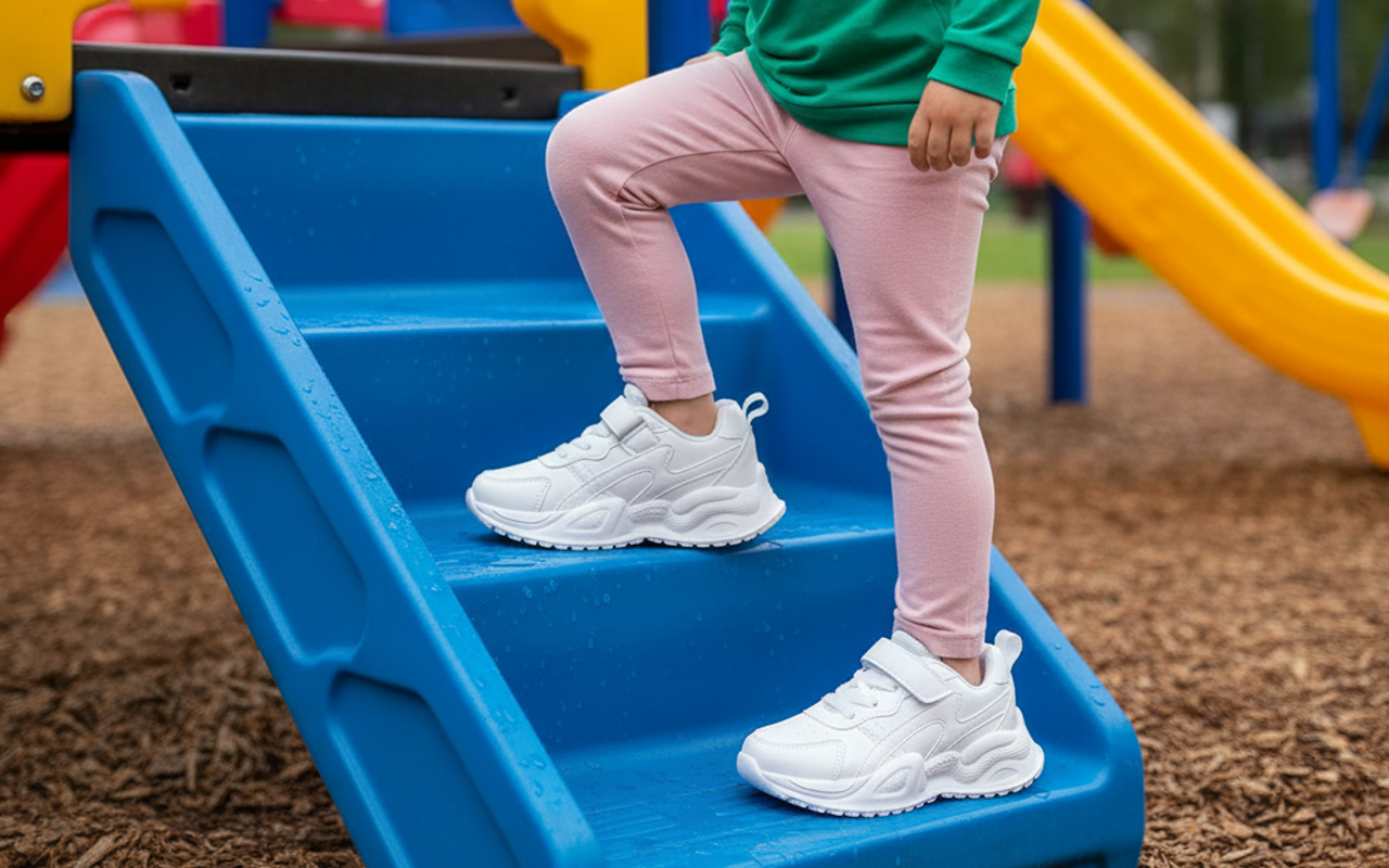 Estas zapatillas son perfectas para correr en el recreo. Mis pies se sienten cómodos todo el día y nunca me duelen, incluso después de horas en el patio de juegos.