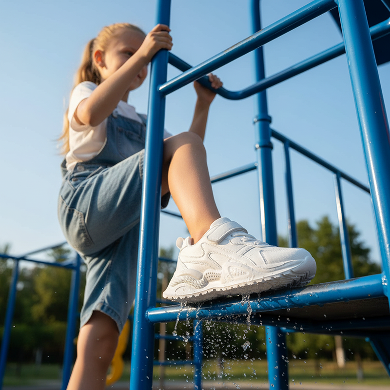 Suela gruesa ayuda a prevenir resbalones en patios o suelos de gimnasios mojados. Niños disfrutan de movimientos seguros donde sea que exploren.