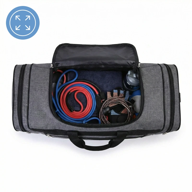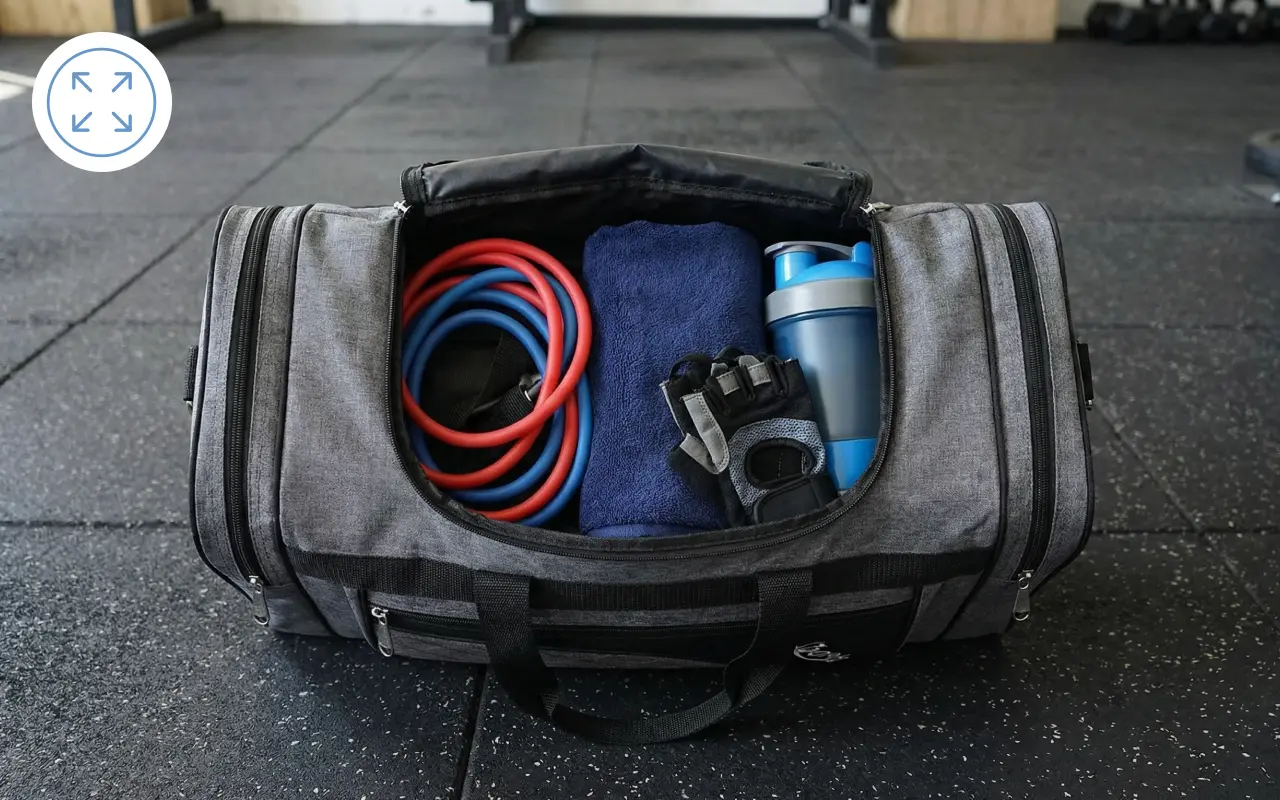 Guarda todo tu equipo de entrenamiento, incluidas las toallas, en un solo bolso espacioso. Nunca te preocupes por quedarte sin espacio nuevamente.