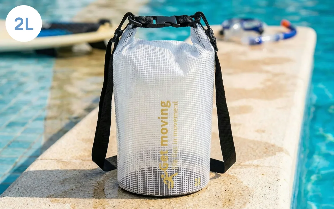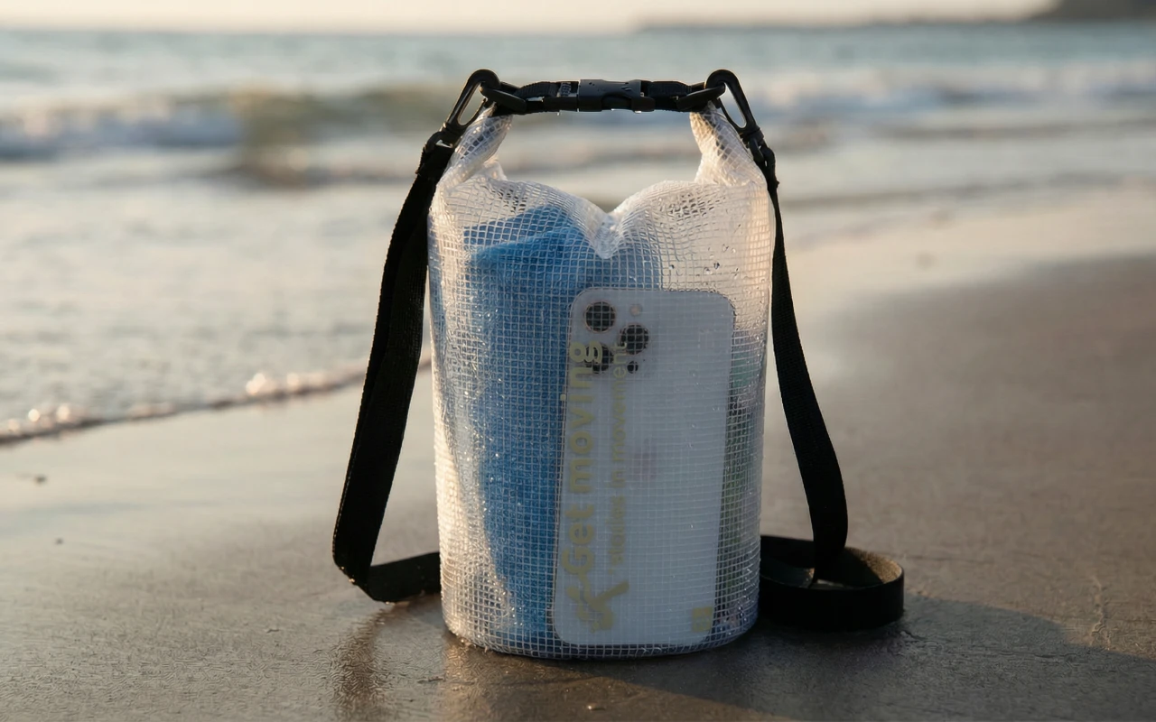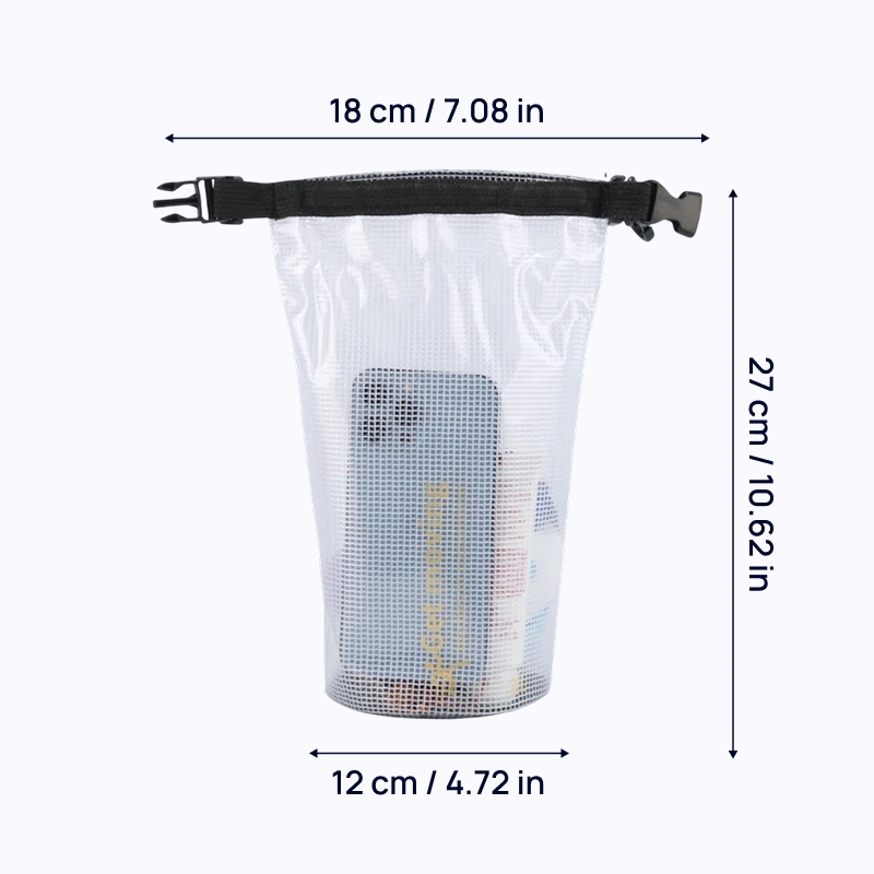 Los artículos se mantienen secos gracias a la tela de malla impermeable. Ninguna salpicadura ni arena puede entrar, por lo que las pertenencias permanecen seguras.