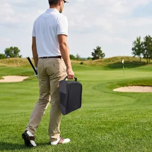 Llevar zapatillas para golf o viajes ahora resulta fácil. La bolsa para zapatos de golf Threo mantiene el calzado seguro, organizado y fresco todos los días. Los laterales de malla permiten que circule el aire, de modo que los zapatos nunca huelan mal ni se sientan húmedos.